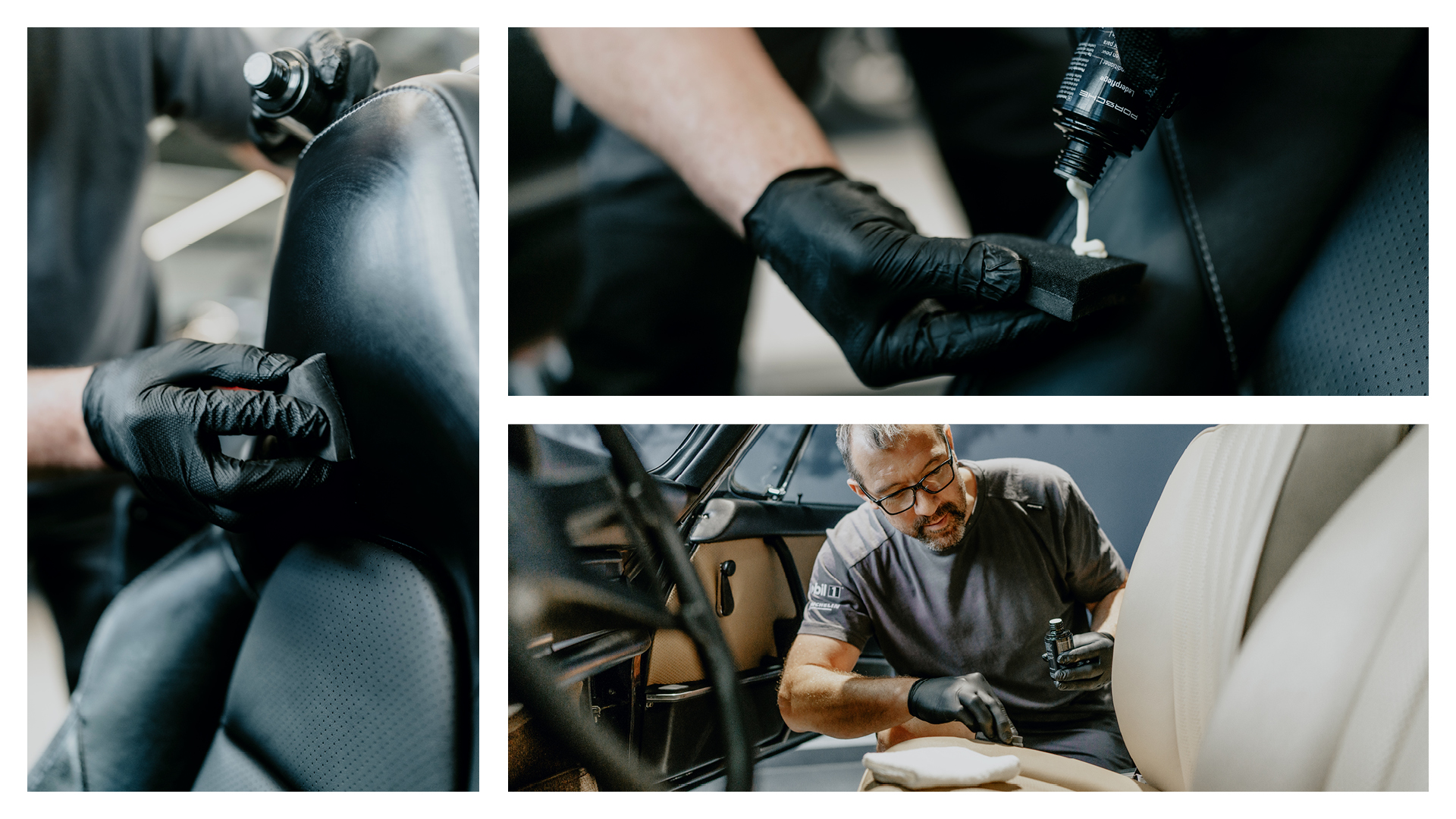 Proper leather care is also a crucial factor in maintaining the aesthetics and longevity of a car. With our leather care service, seats and other leather surfaces remain in excellent condition for much longer. Not only does this service increase the durability of the leather, but it also protects it from day-to-day wear and tear and helps to retain the colour, gloss and suppleness of the material. Thanks to the protection against UV rays and optimum humidity control our leather care service provides, it also helps to prevent fading and the formation of mould and mildew. At the same time, it also improves comfort in various ways, including by reducing odours. This benefits the value retention of the car as a whole and increases its resale value. Combining aesthetic and practical benefits – this service is an all-round good choice!